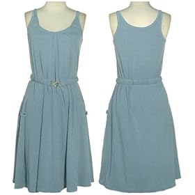 Kersh stretch jersey knit sleeveless women dress has a uniquely banded scoop neckline with slight gathering. The flowy, shaped body features a matching gathered elastic belt with a silver tone latch closure. A small button tab accents the side pockets. This luxuriously soft dress drops down with a folded bottom hem.
