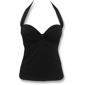 Nylon/Lycra spandex.Adjustable ties.Soft cup bra support.Rouching detail at bust creates flattering neckline.No bulky linings or girdles.