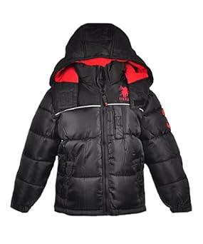 .S. Polo Assn. black and red toddler coat features a zipper closure, with a removable hood. It also features adjustable velcro cuffs, with chest and handwarmer pockets and a logo embroidery on the chest and shoulder.